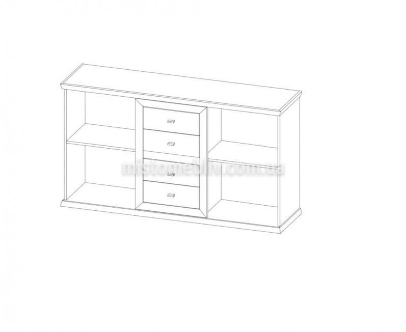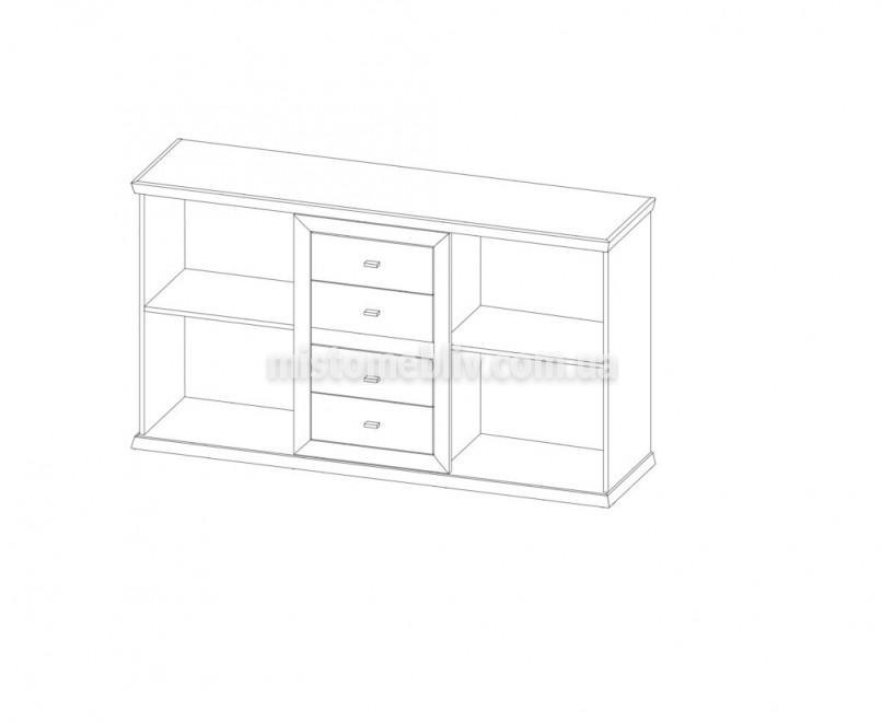Комод 1800 2Д/4Ш Орегон фабрики СОКМЕ має чотири містких висувних ящика, дві додаткові секції з дверками для зберігання речей, зручні ручки.