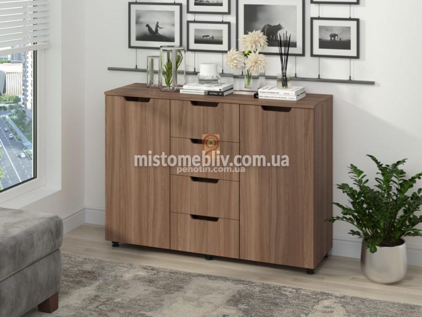Комод "К-4+2" Эко Пехотин (Pehotin) имеет 4 вместительных выдвижных ящика, две дополнительные секции с полками и дверцами для хранения вещей, две открытые ниши, удобные вырезы вместо ручки. Купить комод К-4+2 Эко Вы можете в интернет-магазине «MISTO MEBLIV», оформив заказ на нашем сайте или позвонив на номер, указанный в контактах нашей компании.Также Вы можете воспользоваться нашей доставкой и услугами нашего профессионального сборщика.