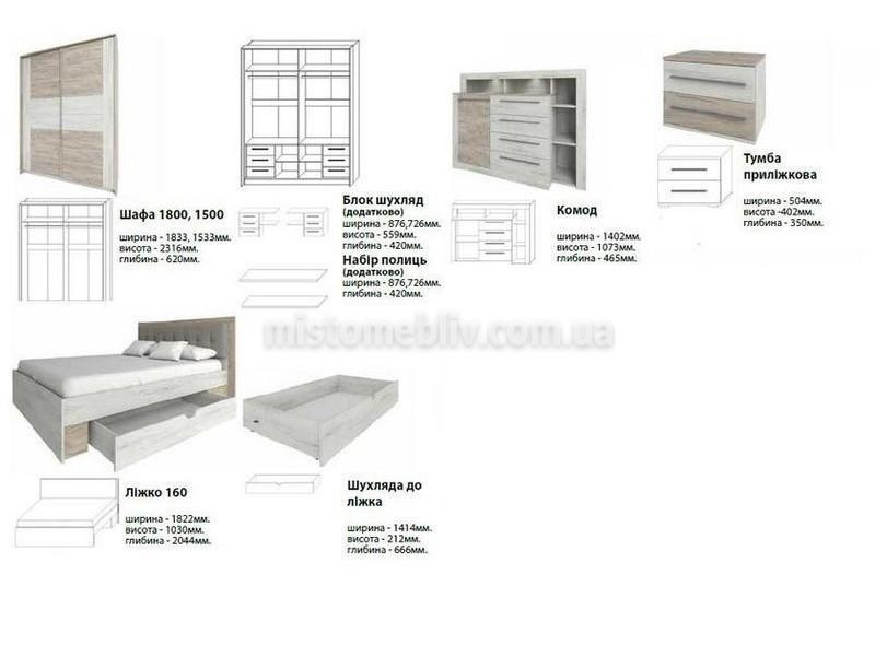 Компоненти системи "Модульна спальня Мілана Сокме" :