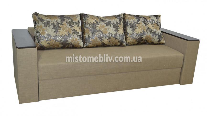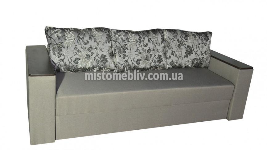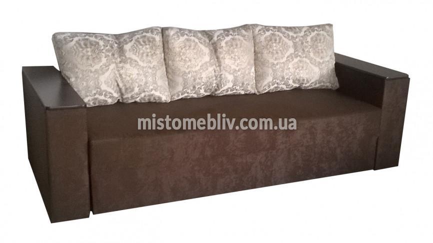 Модель "Гранд" здивує Вас своїм максимальним комфортом, а сучасні подушки зрадять виробу естетичний вигляд. Механізм трансформації - "єврокнижка". Наповнювач: дерево, ДВП, полотно неткане, пружинний блок, войлок (1000), пінополіуретан (ППУ), синтепон. Є ніша для білизни.