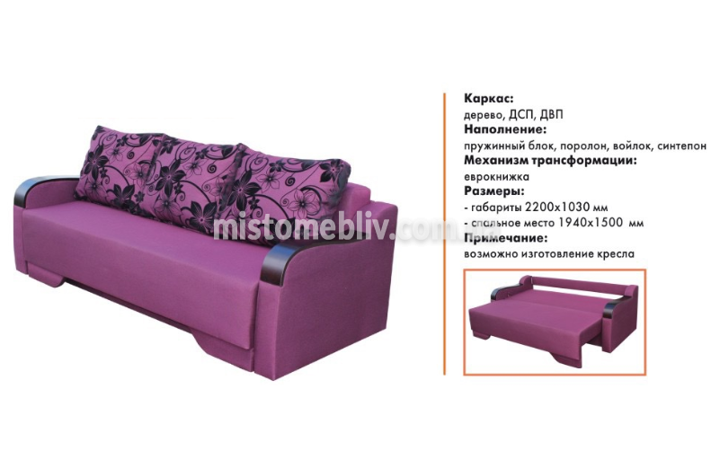 Софа Изабель состоит из дерева, ламинированного ДCП и ДВП. Пружинный блок покрыт войлоком, далее поролон, синтепон и мебельная ткань. Софа Изабель раскладывается еврокнижкой – это очень надежный механизм и прослужит Вам долго и при ежедневном использовании. Разложить его смогут даже меньшие члены семьи. Софа Изабель имеет достаточно интересный дизайн. Под спину предусмотрены 3 съемные подушки, регулировать положение которых может каждый, чтобы расположиться поудобней, а на боковинах есть накладки. Также софа Изабель имеет большую нишу под сиденьем. Купить Софа Изабель фабрики Мягкая Линия Вы можете в интернет-магазине «MISTO MEBLIV», оформив заказ на нашем сайте или позвонив на номер, указанный в контактах нашей компании. Также Вы можете воспользоваться нашей доставкой и услугами нашего профессионального сборщика.